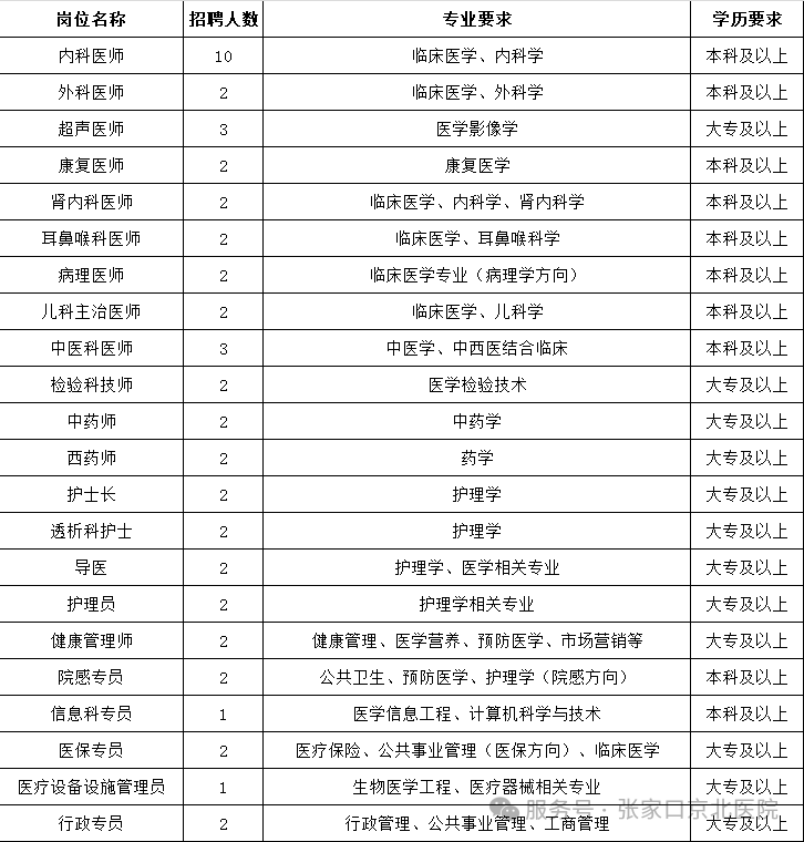 为进一步充实医院人才队伍,优化人员结构,提升医疗服务质量与专业水平,更好地满足区域群众健康需求,张家口京北医院现面向社会公开招聘各类优秀人才,诚邀怀揣医疗初心、兼具专业素养的你加入,携手践行医者使命,共启健康事业新征程。